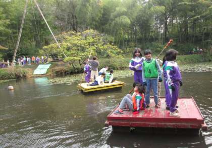 1枚目は、池遊びです。普段体験できない活動に、子供たちは笑顔があふれていました。