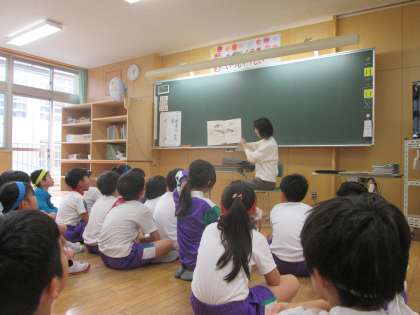今日の読書タイムに読み聞かせボランティアの方が来てくださいました。じっくりとお話の世界に入り込んで聞くことができました。