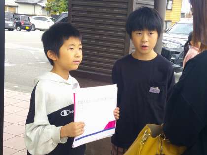 スーパーマーケットでお客さんに声をかけて、発表を行いました。この日までに練習をして総合的な学習の時間で学んだことを地域の方に聞いてほしいという思いで子ども達は伝えました。たくさんの方に聞いていただきました。お忙しい中、聞いていただいた地域の方、スーパーマーケットの方、ご協力ありがとうございました。