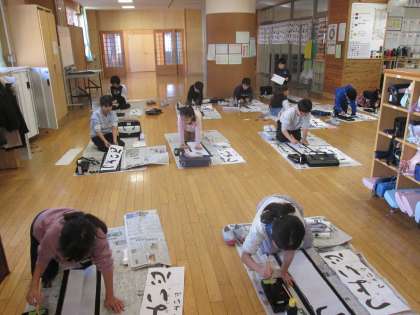 書き初め練習が始まっています。3年生から始まった毛筆で、大きな紙に書くことも初めてです。一文字ずつ、がんばっています。