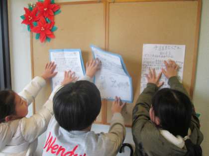 総合的な学習の時間にスーパーマーケットと地区センターで発表し、掲示をお願いしていたポスターを回収しました。掲示してくださったことに感謝の気持ちを伝えて回収しました。ご協力ありがとうございました。