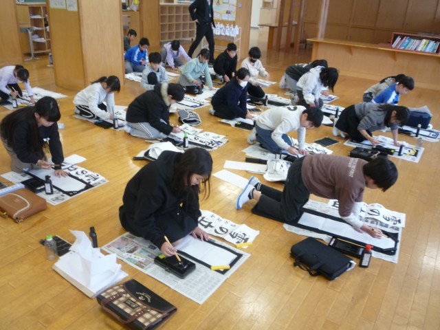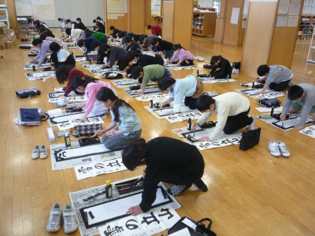 今日は年明け最初の学校でした。久しぶりに友達に会うことができ嬉しそうな様子や、3学期の頑張りたいことを思い浮かべながら始業式に参加する姿が見られました。始業式の後には「書き初め大会」があり、練習してきたことを意識して書く姿が見られました。
