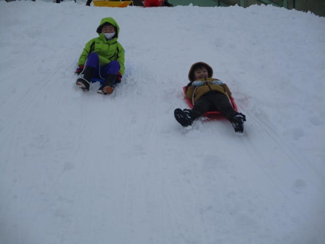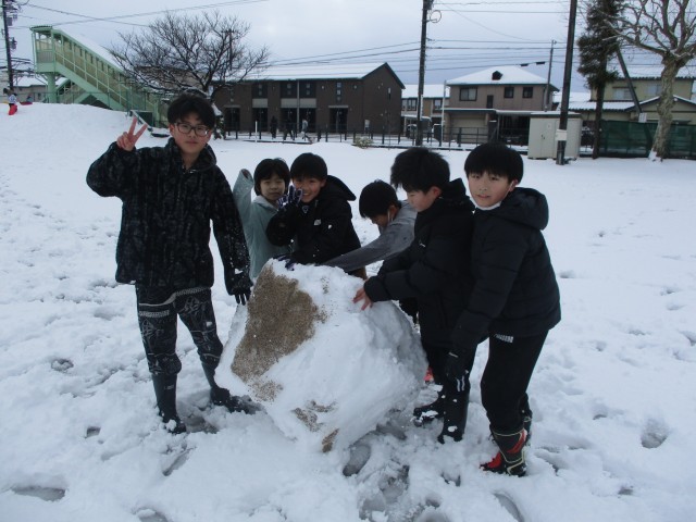 休み時間には早速外に出て、そりや雪合戦、雪だるま作り等を楽しんでいます。