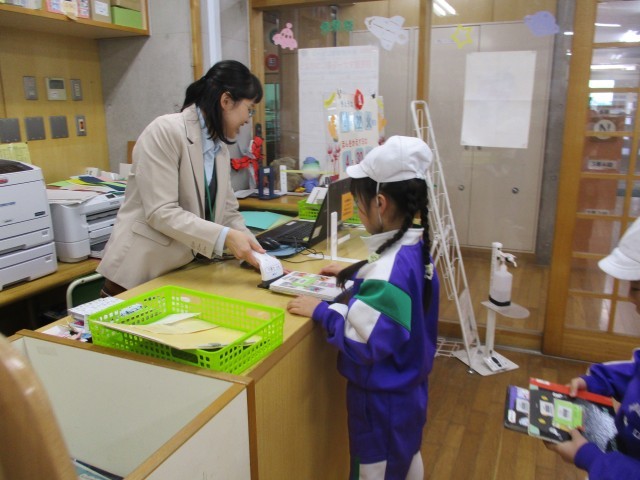 図書の貸し出しも行いました。2年生でもたくさんのすてきな本に出会えるといいですね。