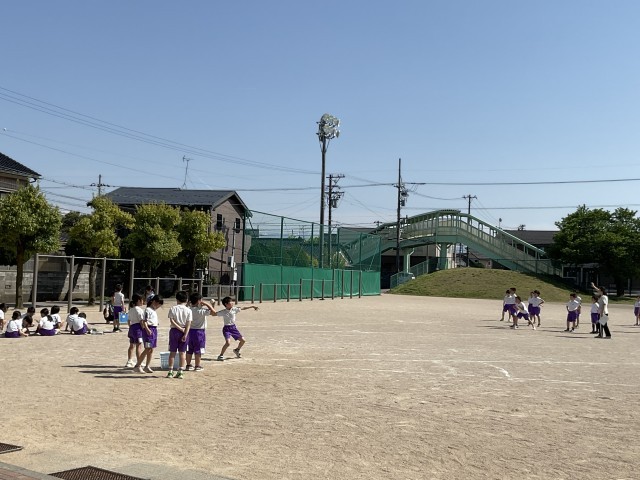 体育科では新体力テストの測定を行なっています。今日はソフトボール投げの測定を行いました。