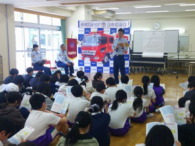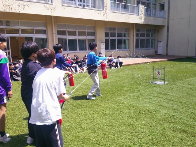 消防局の仕事や身近な消火設備について学んだり、消化器体験をしたりしました。