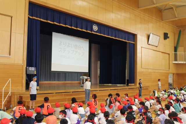 蘭秀児童会のスローガンが決定しました。運営委員会の子供たちの力強い発声で、「よりよい自分へステップアップ~何事も楽しみ、全力で~」の合い言葉を宣言しました。今年度も、さらに児童会をパワーアップさせていこうとする意気込みが感じられました。