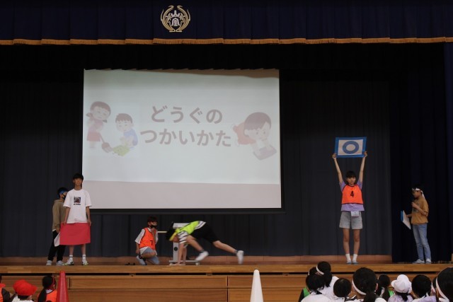 縦割り清掃は今月末より始める予定です。環境美化委員会の子供たちは清掃において大切なことを全校児童に演技やクイズを交えて分かりやすく伝えました。