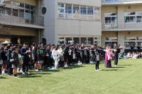 卒業式が終わり、いよいよ卒業生の本当の巣立ちのときです。巣立ちの会は、中庭で行い...