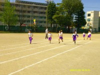 体育科では、50M走の記録を測りました。子供たちは、ゴールに向かって力いっぱい走...