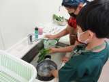 調理実習でほうれん草のおひたしを作りました。 班で協力しておいしいおひたしができ...