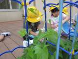 あさがおがぐんぐん大きくなっています。 みんなの手より葉が大きくなって、ツルが出...