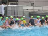 プール開きです。3年生は1時間目に入りました。まずは水に慣れるようにプールサイド...