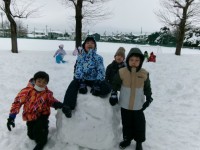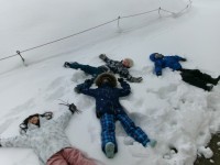 4年生も雪遊びをしました。クラスごとにローテーションをして、坂でそり滑り、リレ...