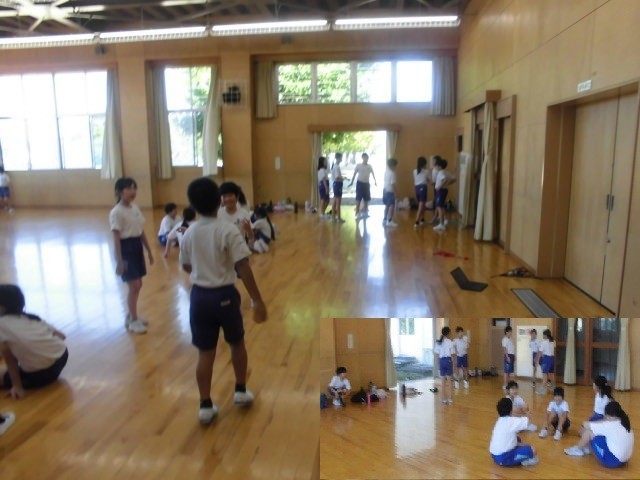 4年2・3組体育で、基本的なダンスの動きやステップ、振り付けをみんなで練習した後、グループで、どんなダンスをつくるか話し合いました。これから、曲を選んだり振り付けを考えたりします。どんなダンスができるか楽しみですね。