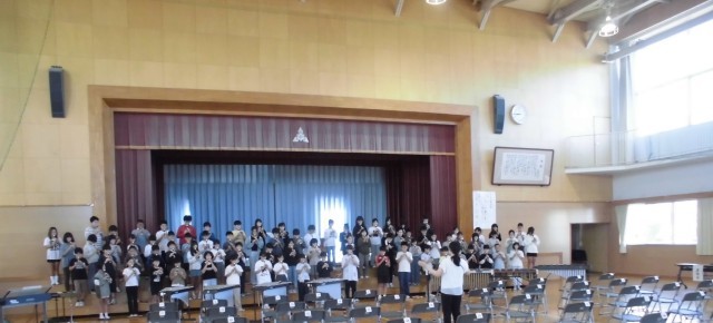 5年生の発表は、「Action(自ら行動)、Session(心を合わせて)、Passion(熱い思い)」を合言葉に、二曲の楽器演奏に取り組んでいます。22日(月)が校内発表会です。