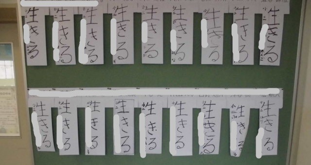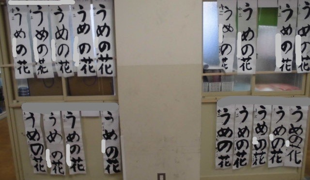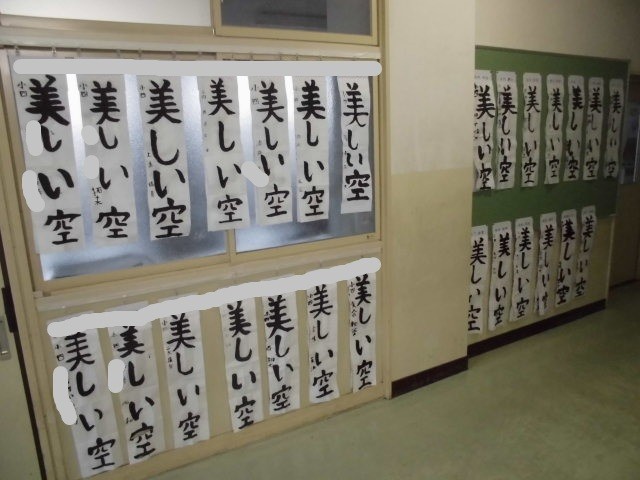 書き初め練習が始まりました。題材は、2年「生きる」、3年「うめの花」、4年「美しい空」です。今後も各学級、各自で練習を続け、どんどん上達することと期待します。