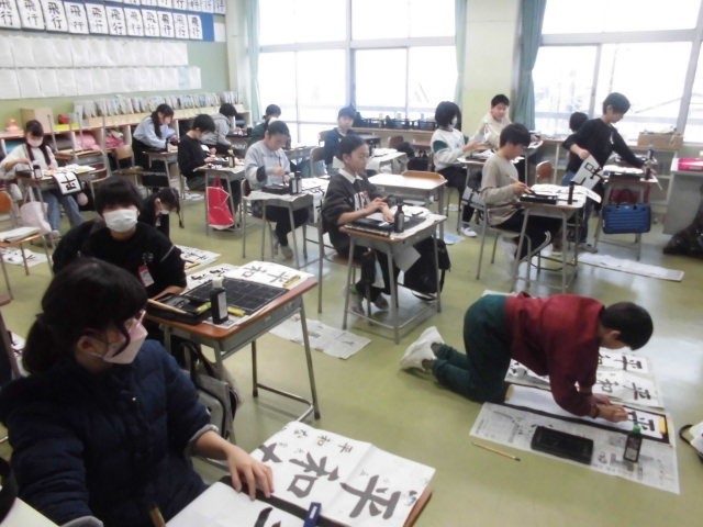 5年生が書き初め大会で「平和な海」という習字を書きました。高学年らしく、堂々とした字を書くことができました。字のごとく、平和な年になることを願います。