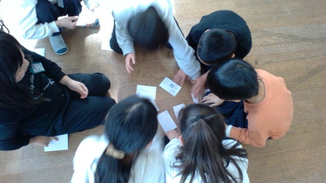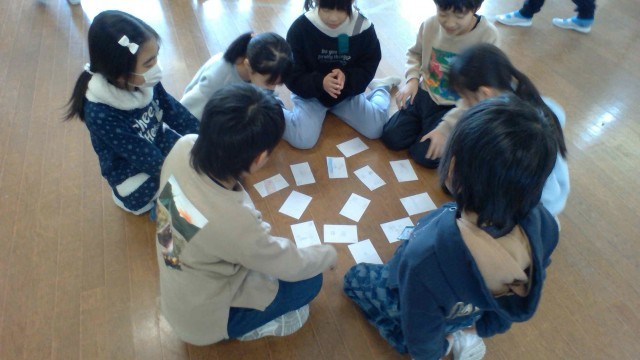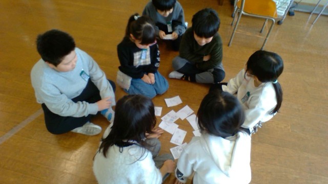 漢字の音読み、訓読みどちらも入った文を考え、かるた遊びをしました。