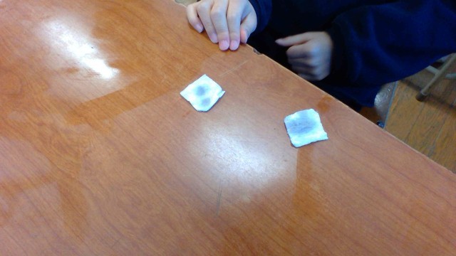 配られたウェットティッシュで机をみがくと、これまでの汚れがとれて、机がピカピカになりました。