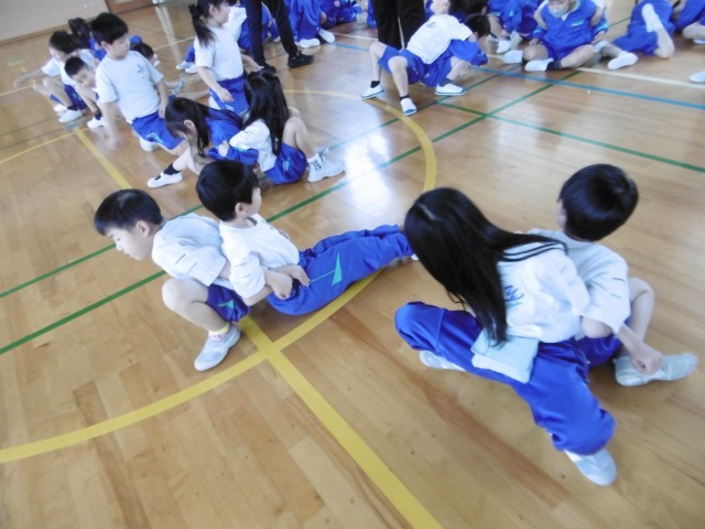 2年生初めての体育科の学習は、学年みんなで行いました。身だしなみや学習のルールについて確かめた後は、体全身を使ったじゃんけんや二人組の運動に取り組みました。最後は、トンネルくぐり競争です。子供たちの笑顔いっぱい、元気な声がアリーナに響く楽しい時間になりました。