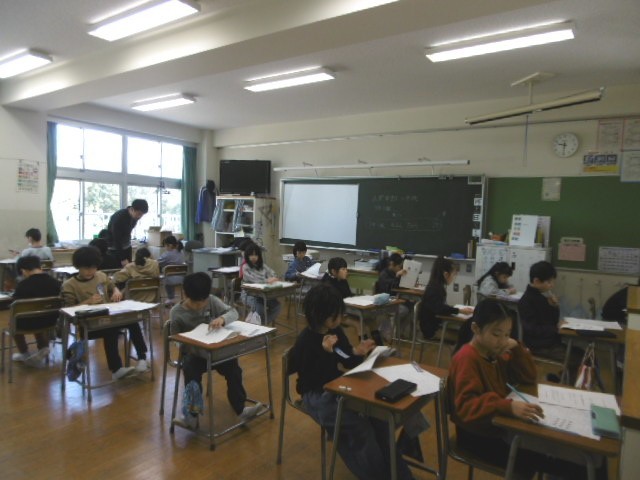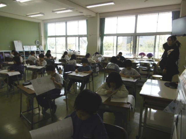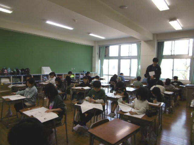 初めての学力調査の様子です。今までのテストとは違った問題に、真剣に取り組んでいました。