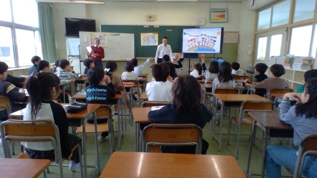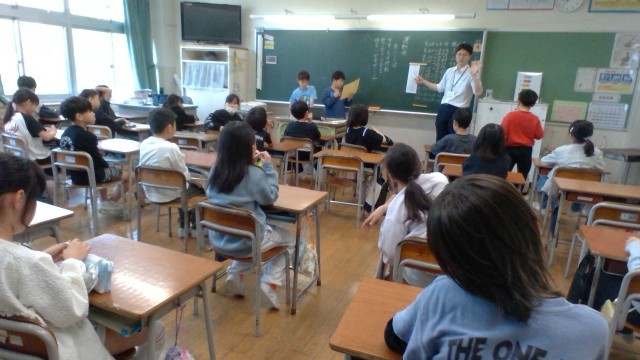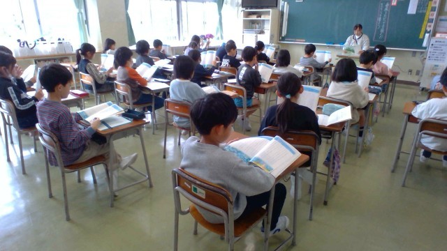 3組は国語で物語を聞いています。