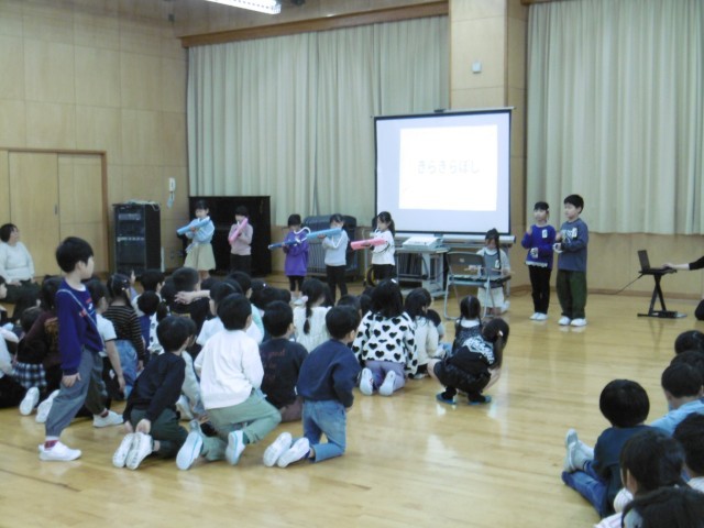できるようになったことの発表では、一度失敗をしてもあきらめずにやりきる姿が素敵でした。鍵盤ハーモニカの演奏では、きらきら星を演奏し、一年生へ入学おめでとの気持ちを替え歌にして伝えました。