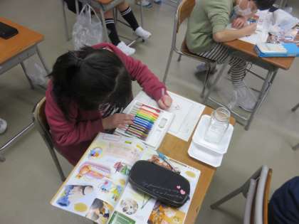 図画工作科では空き容器を使って、小物入れなどの生活に役立つ道具を作っています。家から持ってきた容器をあれこれ組み合わせながら、楽しそうに設計図を考えていました。どんな作品になるか楽しみですね!
