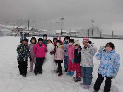 臨時休業後、初のグラウンドです。今朝の新雪もあり、誰も踏んでいない雪の上を2年生が駆け回りました。雪合戦をしたり、3段の雪だるまを作ったりして、全身で雪を楽しみました。