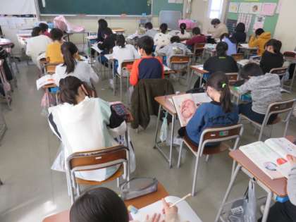 理科では「人のたんじょう」の学習をしています。教科書にある4つのテーマの中から、それぞれが調べたいことを選んで調べ学習を行っています。調べ学習では、コンピュータ室で動画を視聴したり、教室で教科書や図書室の本を見たりしながら、ノートにまとめています。自分の調べたいテーマということもあって、調べ学習の態度は真剣そのものです。