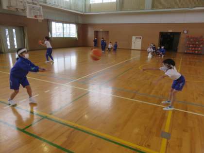 体育ではセストボールの練習が始まりました。バスケットボールに似ており、パスをつないでゴールにシュートします。今日はパスの練習を中心に行いました。声を掛け合いながらパスをしており、チームワークの良さを感じることができました。試合をするのが楽しみですね。