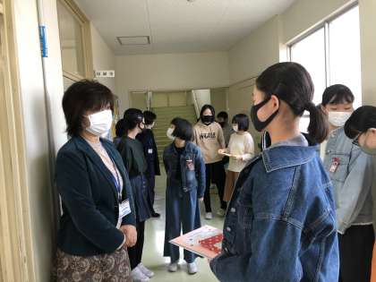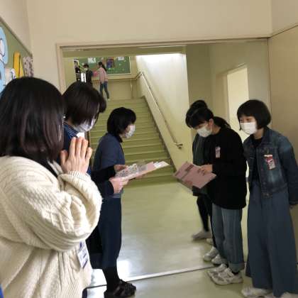 お世話になった先生方、職員の方々に寄せ書きの色紙を渡しに行きました。