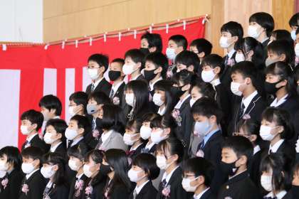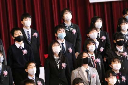 103人全員が門出の言葉をしっかりと伝え、卒業生の歌「旅立ちの日に」を歌いました。優しく、素敵な歌声でした。