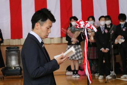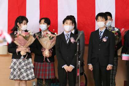 巣立ちの会では、PTA会長さんから激励の言葉をいただきました。最後には卒業生から、下級生、保護者の皆様、職員に向けてエールを行いました。下級生に思いが届きますように。