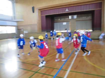 体育は、今日が最後です。ダンクボールの試合をしました。はじめの頃は、パスを回す意味が分からなかった子供たちですが、ボールを持っていない人が動くことや相手をよく見て動くことなどを練習や試合から学び、随分上達しました。今日初めてゴールができた子供が、自分自身でびっくりしていたようです。偶然ではありませんよ。