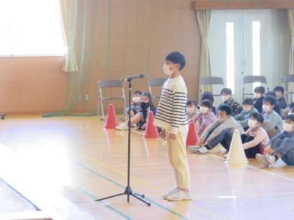5年生として過ごした186日間。学年目標である「ハーモニー」を意識して、自分を大切に、人を大切に行動してきました。すべきことに向かって全力で行動できる力、人のために気持ちよく動くことができる力、仲間が困っているときには優しく声をかけることのできる力等、多くの力が育っていると感じることができた一年間でした。いよいよ来年度は最高学年です。学校の顔です。この5年生なら、さらに素敵な山室中部小学校にしてくれると確信しています。