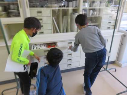 今日は家庭科の学習をしました。5年生から始まる教科なので、これからどんな学習が待っているのか教科書を確認したり、家庭科室にいきどんなものがあるのか調査しにいったりしました。