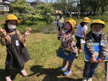 国語「春がいっぱい」の学習で春を見つけるために大好きなビオトープに春を探しに行きました。アメンボやメダカ等の生き物に夢中の子、いろいろな花を次々と探す子、それぞれとっても嬉しそう。「これはオオイヌノフグリだよ」と花の名前を教えてくれる子もいました。