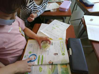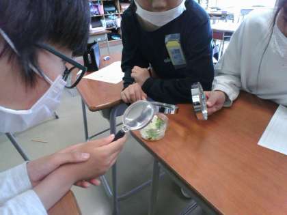 みんなのキャベツ畑からモンシロチョウの卵や幼虫がたくさん採取できましたので、育てる環境を整え、観察をしました。