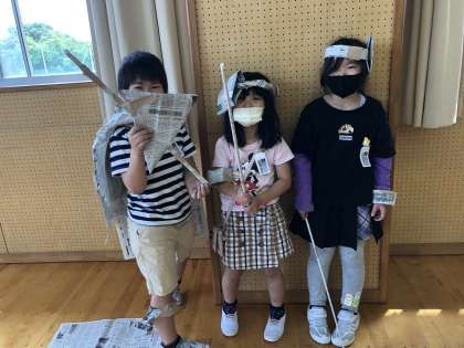 片付けのときには「壊してしまうのがとすっごく悲しい」と新聞紙の作品に愛着をもつ姿がとっても可愛らしかったです。