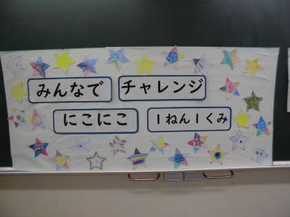 クラス全員で話し合って決めた学級目標の掲示物を作りました。星の枠に色を塗り、素敵なものが完成しました。出来上がった掲示物を見て、歓声をあげていました。