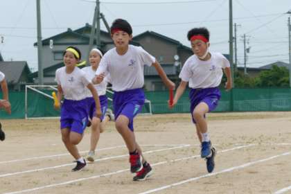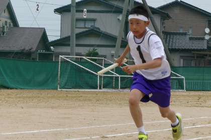 最後に行ったのは選抜リレーです。各団の俊足8名がバトンをつなぎます。休み時間などを利用し練習を重ねました。時には違う団同士の子供でバトンパスの練習をしたりアドバイスをしたりする姿も見られました。団を超えた友情が見られ、とても嬉しかったです。本番も団みんなの思いをバトンに託してつなぐことができました。