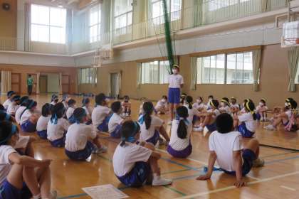 閉会式終了後、6年生で振り返りを行いました。各団での振り返りでは団リーダーが感謝を述べていたり、他の子がリーダーの頑張りをねぎらったりするなど、心温まる時間となりました。学年全体で振り返った後、最後は6年生コールで締めました。