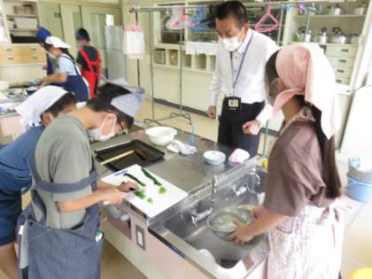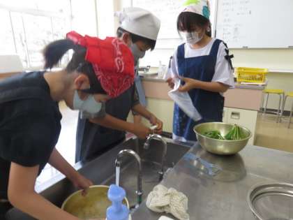 5,6限目にゆでる調理に挑戦しました。メニューは「青菜のおひたし」と「ゆでいも」です。