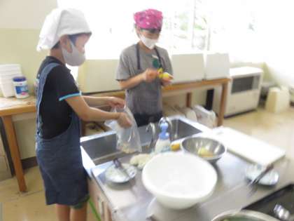 ほうれん草とじゃがいもはそれぞれお湯でゆでるのと水からゆでるのとで、調理の仕方が違います。子供たちはゆで時間に気をつけて一生懸命つくリました。