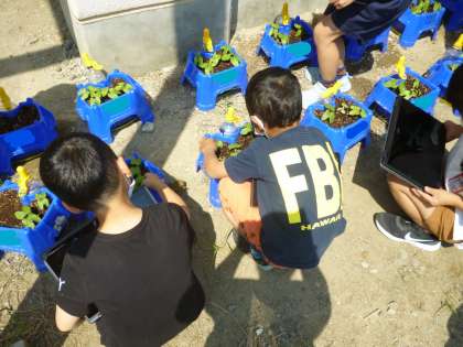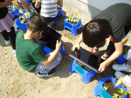 今日の生活科では、あさがおの芽を観察しました。顔を近づけてよく見たり、触ってみたりしながらじっくりと観察していました。また、chrome bookを使った写真撮影にも挑戦しました。日々成長していくあさがおの様子に目を輝かせながらお世話をしている子供たちです。