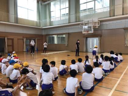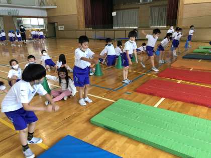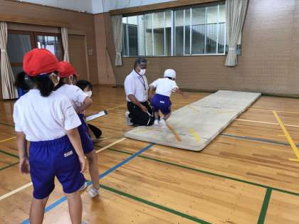 体力テストをしています。今日は学年で「立ち幅跳び」の練習をしました。遠くまでジャンプしようと何度も何度も練習していました。