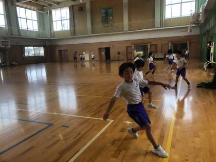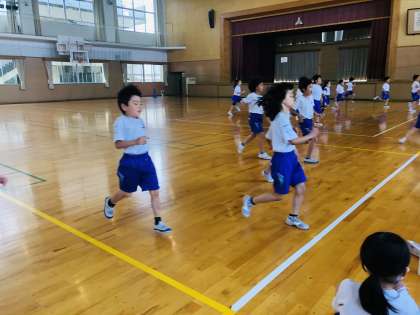 体力テストは先週から「シャトルラン」にチャレンジしています。今日は2、3回目です。どんどん速くなっても、次の電子音に間に合うよう勢いよく走る姿、たくましかったです。