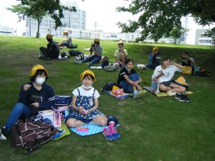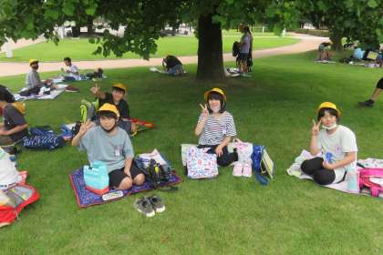 楽しみにしていたお弁当の時間です。子供たちは環水公園の綺麗な景色を楽しみながら、愛情たっぷりのお弁当を美味しそうに食べていました。「映えスポット」がたくさんの環水公園。素敵な写真も撮れました。